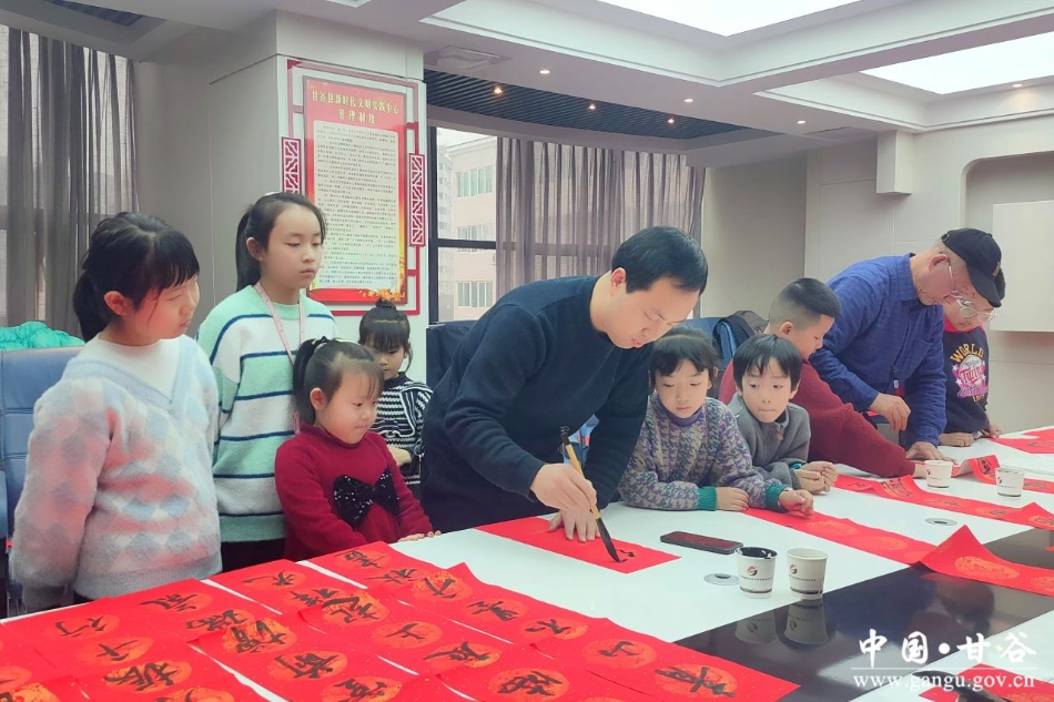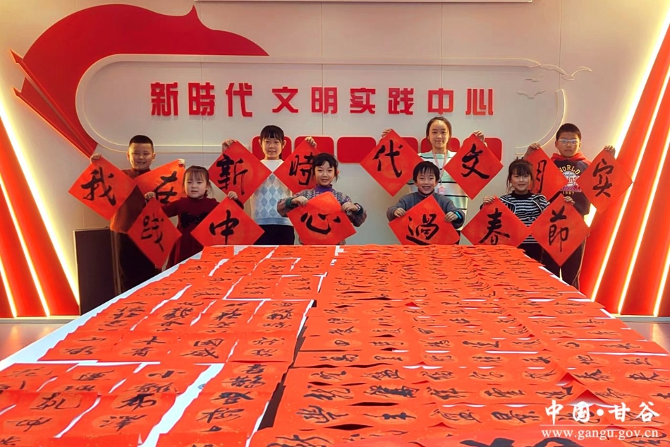 新天水讯 据甘谷县融媒体中心消息 新春佳节来临之际,1月23日,甘谷县新时代文明实践中心携手县文联书法爱好者,开展“我在新时代文明实践中心过春节”主题活动,以墨香为引,书写春联,与少年儿童共同迎接一个充满文化气息的新春佳节。