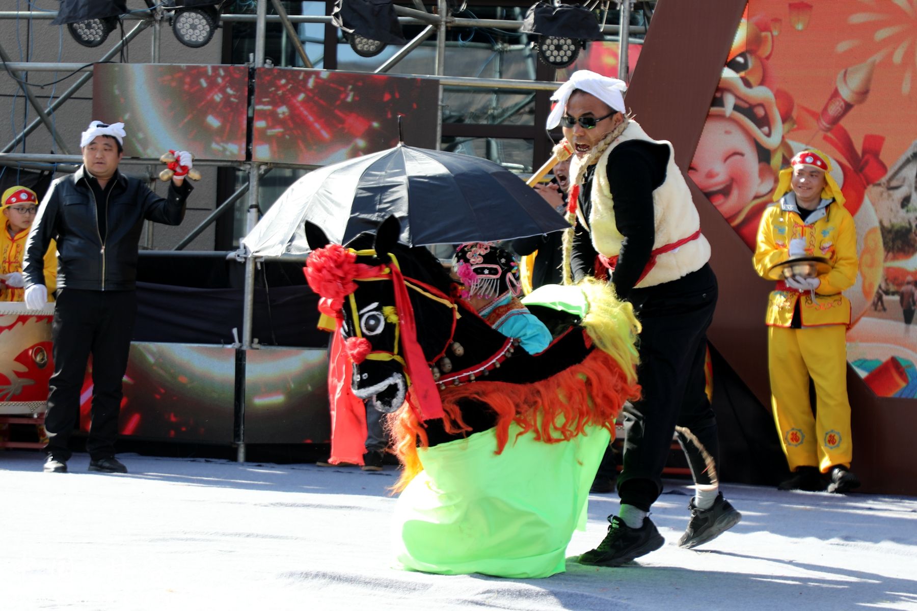 甘谷抬鼓的表演不仅为嘉年华增添了文化内涵,也带动了当地的文旅经济。许多游客在观看表演后,纷纷前往周边的特色小吃摊位和手工艺品展区消费。来自西安的游客张先生说:“甘谷独具特色的抬鼓表演,真的震撼,真的精彩。到中午了,我们准备吃点麻辣烫,天水呱呱啥的,给亲朋好友带点甘谷辣椒,转转看看买买天水特色产品。”