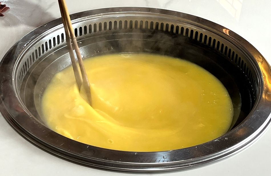 谈及馓饭的制作,虽看似简单,却处处透露着讲究。精选当年的新鲜玉米磨成的面粉,是成就一碗美味馓饭的关键。制作时,需将按比例调配好的玉米面与小麦粉混合均匀,然后在烧开的锅中加入适量的水,放入切块的土豆焖煮片刻。接着,便是考验手艺的时刻:右手执长竹筷,左手抓玉米面,边抛洒边匀速搅动,确保面糊不粘锅。待面糊稀稠适中,气泡翻滚如核桃般大小时,再用大勺来回搅拌,中小火慢煮之下,浓郁的麦香四溢,一锅香喷喷的馓饭便大功告成。