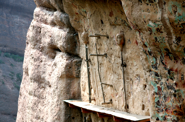 新天水讯 据武山县融媒体中心消息 拉梢寺单元崖面西侧下层,有两个人为凿出的窟龛,龛内存以石雕泥塑所做覆钵式舍利塔。在 13号梯形摩崖浅龛内石雕泥塑一覆钵式塔,塔通高2.18米,由三部分组成。塔基为四层依次递减内收的方形台基,下宽上窄;塔身为覆钵状,下有单瓣仰莲承托,塔身上为相轮,底部为束腰叠涩台基;塔尖由三部分组成,下面为八棱锤状饰物,中间为圆形承露台,上部为摩尼宝珠。在塔身覆钵左侧残损泥皮断裂处可见填塞的墨书藏文纸片。覆钵的顶部有一后人开凿的方孔用作香炉。在龛内正壁泥皮上彩绘由石绿、石青两色构成的飞舞幡带,在塔尖摩尼宝珠四周绘火焰纹,在覆钵左下方残留的泥皮上依稀可辨绘有仰莲瓣。第15号龛较13号塔龛体型更大,在其右侧,梯形摩崖浅龛利用天然崖面略加开凿而成,两侧残留桩眼及火焚木桩,这里原应有木构防雨设施。龛内塑一覆钵塔,塔通高5.68米,由三部分组成。塔基为五层依次内收的方形台基组成;塔身为覆钵形,下有复瓣式仰莲承托,底部为倒斗形台座,其上为依次内敛的13层相轮;塔尖由三部分构成,下部为一四棱锥形饰物,中间为圆形承露台,上方为摩尼宝珠。塔身表面原有藏式风格的彩绘,龛内壁画由正壁沿覆钵外缘绘石绿色幡带,沿相轮外缘绘石绿和白色相间的幡带,龛内左右壁依稀可辨绘红色火焰纹。大佛头顶遮雨檐上方的崖面彩绘两排覆钵塔,为北周彩绘原作,多达34座,由汉代流行的古印度佛塔变幻此形,墨线勾勒再填充色彩,以黑白红为主色,形制与13、15号龛舍利塔几乎完全一样。此外水帘洞单元也有泥坯浮塑的覆钵塔,与拉梢寺不同的是在塔基的下方浮塑覆莲瓣来衬托,塔形结构精巧,有古印度佛塔的造型特点。