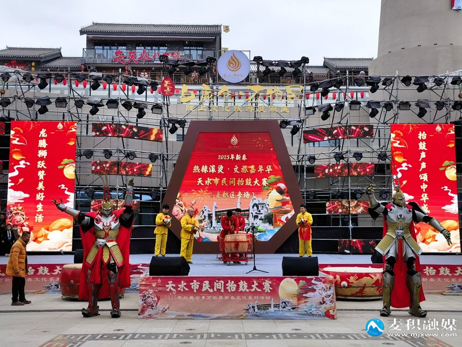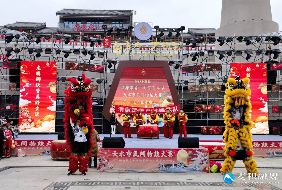 新天水讯 据麦积区融媒体中心消息 2月9日,位于麦积区的天水白鹿仓·万物昇陇上文化旅游度假区锣鼓喧天,热闹非凡,天水市民间抬鼓大赛麦积区专场在这里热烈举行,吸引了众多游客和市民前来观看,共同感受这一传统民俗活动的独特魅力。