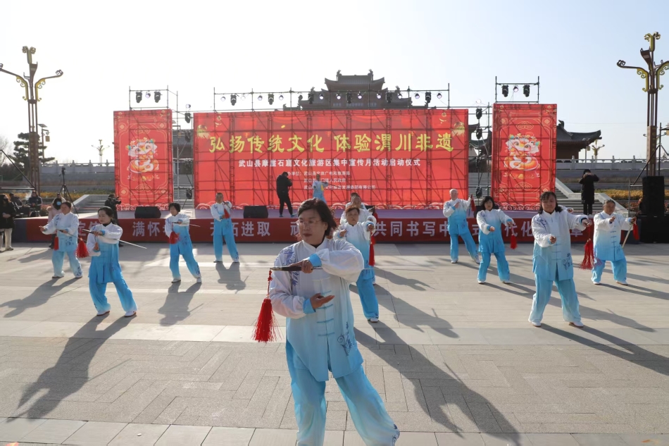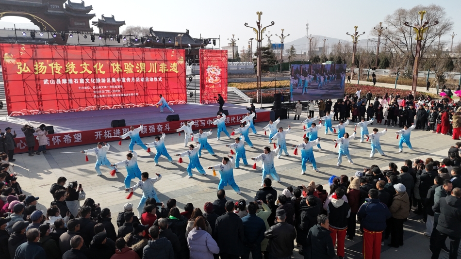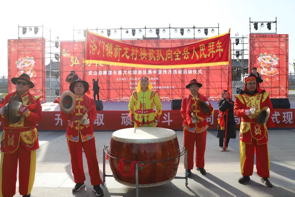 精彩的民俗表演拉开了序幕。舞龙舞狮、民俗表演、扭秧歌……丰富多彩、独具魅力的新春文化大餐,全方位展现武山摩崖石窟文化旅游区的深厚文化底蕴和蓬勃发展活力。具有乡土特色的舞龙表演、刚柔并进的武术、欢快喜庆的秧歌舞蹈,赢得了阵阵掌声,市民和游客们齐聚一堂,在热闹红火的氛围里祈愿新年好运,尽情感受着浓浓的年味及我县独特的文化魅力。