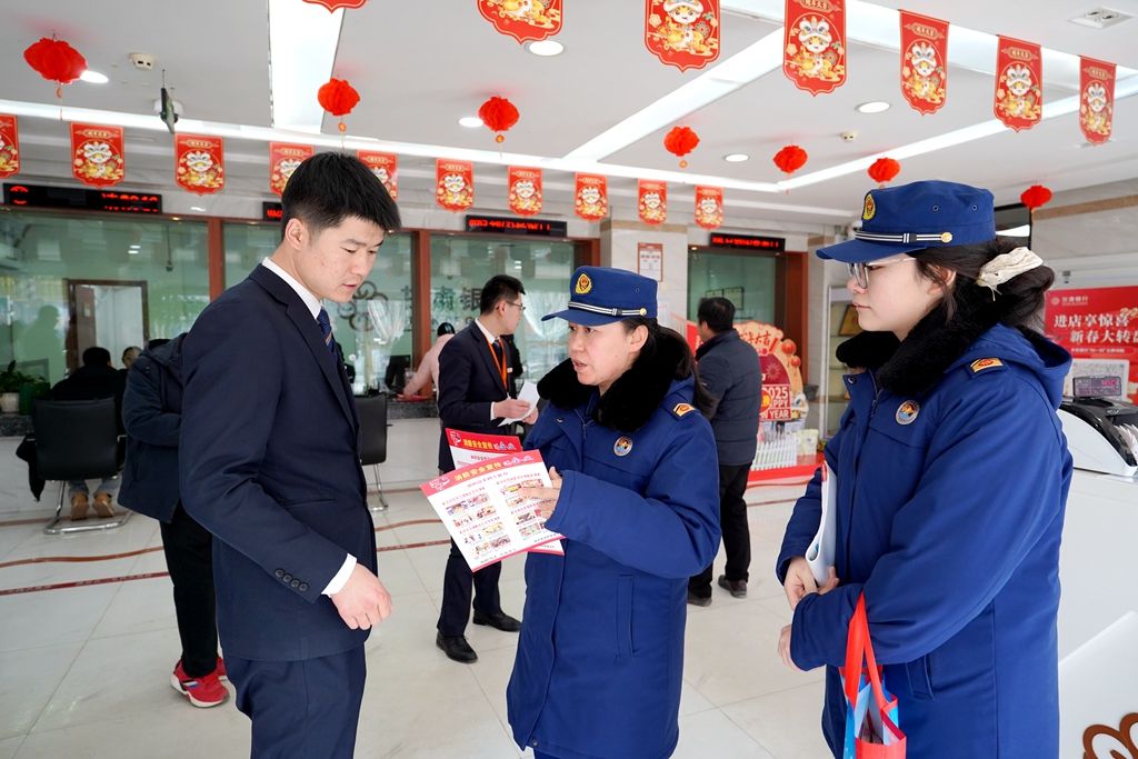 消防宣教人员结合金融机构的特点,详细讲解了火灾的成因、危害以及预防措施。在现场,消防宣教人员向金融机构员工和前来办理业务的群众发放消防安全提示宣传彩页。彩页内容丰富,涵盖火灾预防、逃生自救、消防设施使用等多方面知识,图文并茂,通俗易懂。宣教人员结合彩页内容,用生动的语言讲解日常工作和生活中常见的火灾隐患,如电气设备长时间使用、电线私拉乱接等,并强调了预防火灾的重要性和紧迫性。同时,针对金融机构内常见的电气设备、线路等易引发火灾的因素,宣教人员进行了重点剖析,提出了具体的防范建议。