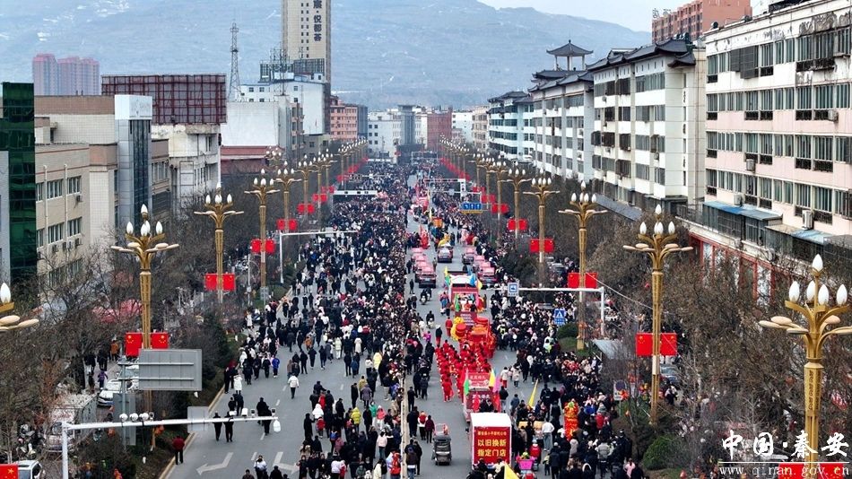 春意未萌、寒意料峭。当日,秦安县城锣鼓喧天、欢声鼎沸,成千上万名城乡群众带着满心的期待从四面八方早早赶来,抢占最佳观赏位置。争相观看这一最接地气、最具年味的民间艺术表演。这场活动不仅是民俗狂欢,更是秦安展示发展成果、展望未来的重要窗口。