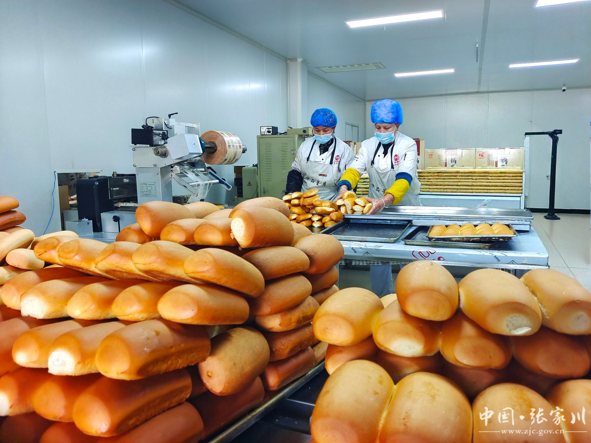 新天水讯 据张家川县融媒体中心消息 春节过后,张家川经济开发区胡川园区各大企业陆续开工复产,一派“开新局,谱新篇”的实干气象。走进位于园区的兴跃食品有限公司直播间里产品摆放琳琅满目、直播设备准备就绪,为当天晚上的直播带货做着十足的准备,生产车间门外就已经飘着浓浓的麦香味,营养面包生产线上十余名工人流水线作业,新年的生产已然开启。