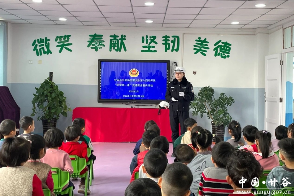新天水讯 据甘谷县融媒体中心消息 为了有效预防和减少学生道路交通安全事故发生,切实提升师生“知危险、会避险”交通安全自我防护知识和防范风险意识。2月25日,甘谷公安交警走进第四幼儿园开展“开学第一课”交通安全宣传活动。
