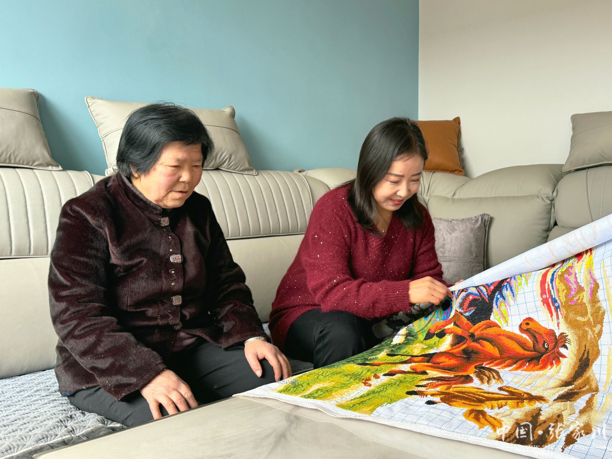 在太原村,“好婆婆”张锦兰和“好儿媳”李芳莲家庭里的和美家风同样温暖着邻里乡亲的心。记者到访李芳莲家中时,婆婆张锦兰刚遛弯儿回来,李芳莲忙活着为家中装饰用的十字绣,《万马奔腾图》在一针一线中栩栩如生,婆婆夸赞儿媳心灵手巧:“多年来家中都是我的儿媳在打理,儿子常年外出打工,家里大大小小的琐事都要媳妇操心,你看这家里井井有条,都是她的功劳哩!”