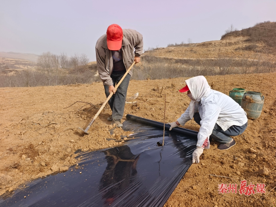 走进藉口镇新尧村,放眼望去,一垄垄膜布整齐地嵌在果园里,在阳光下熠熠生辉。村民们正忙着开沟、浇水、覆膜、修整土地,田间地头呈现出一派忙碌的劳作景象。
