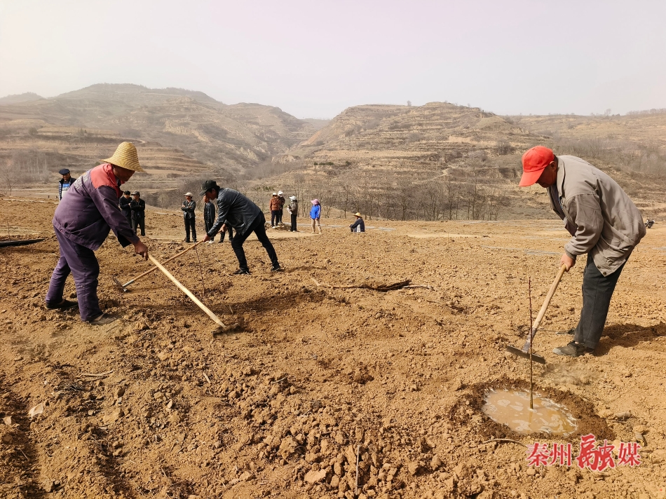 “手把手地指导我们咋栽树、铺膜、浇水,保证提高树苗的成活率,更新大樱桃的最新品种。”秦州区藉口镇新尧村村民王小兵说。