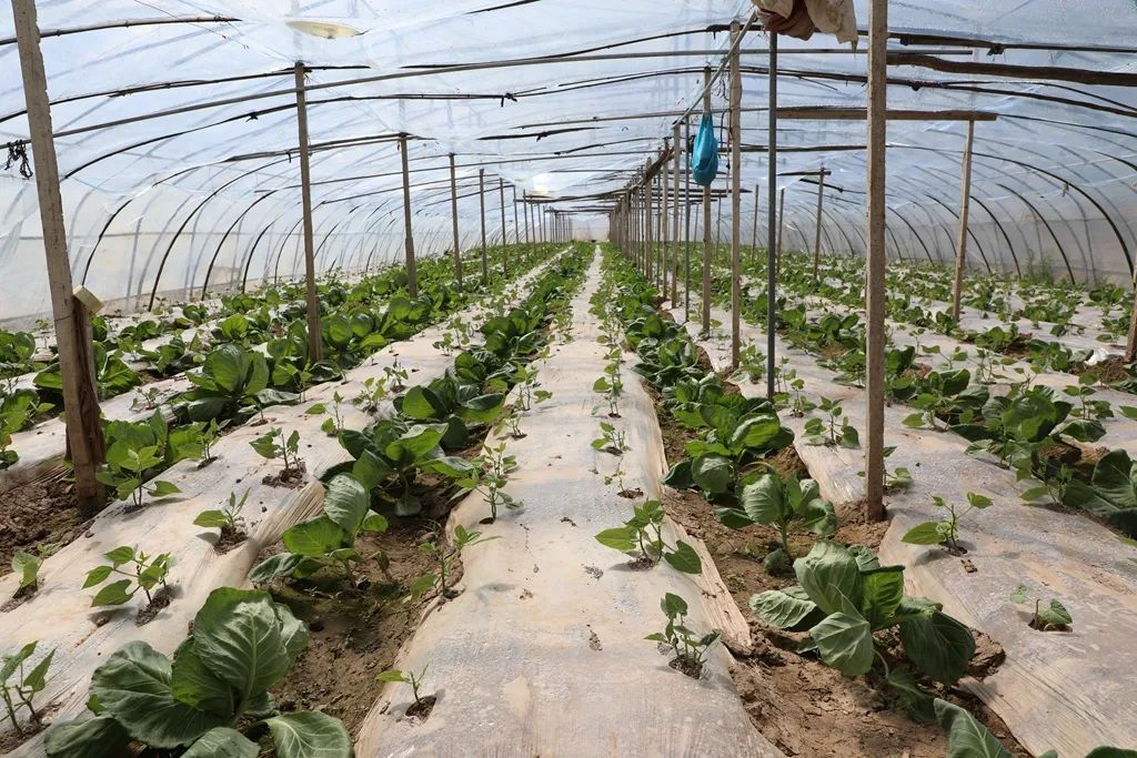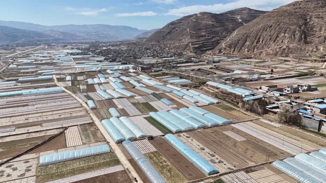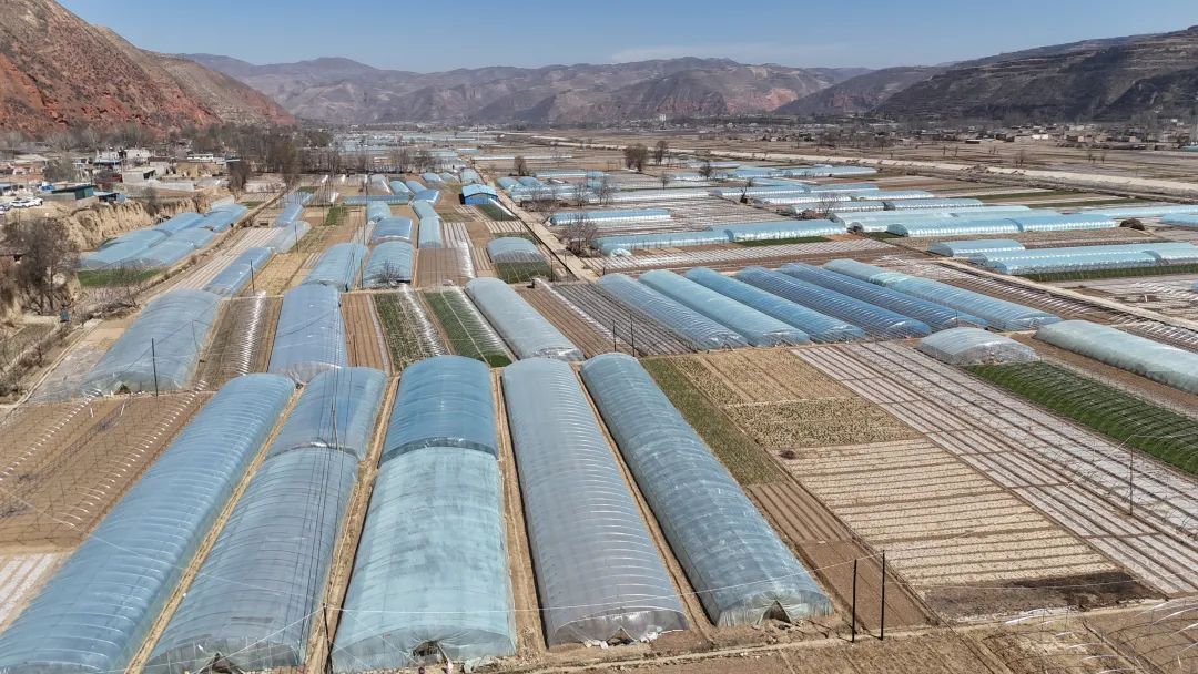 新天水讯 据武山县融媒体中心消息 眼下,走进马力镇苗丰村蔬菜种植基地,一座座新建的钢架大棚错落有致,田间地头,农户们正抢抓农时,为新建的钢架大棚覆膜下种,一派繁忙的春耕景象。大棚内,辣椒、豆角、韭菜、卷心菜、马铃薯生长正酣。