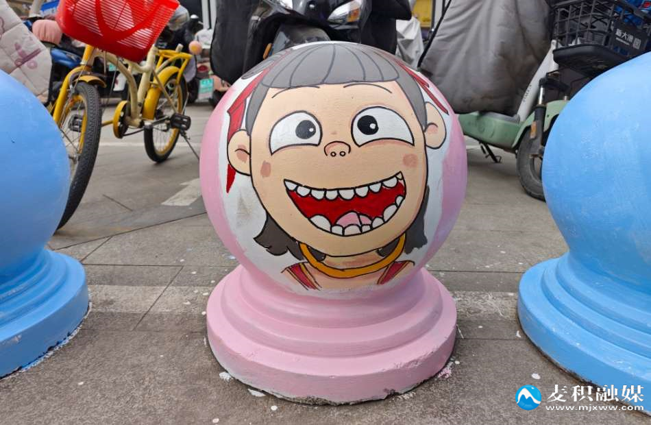 原本灰暗不起眼的安全石墩被披上了明亮而充满活力的彩色外衣,电影里的经典角色被栩栩如生地绘制在石墩之上,吸引了许多市民热议和打卡拍照。市民刘丽带着孩子在石墩旁驻足拍照,她笑着说:“今年哪吒这个形象特别火,小孩子特别喜欢,我觉得这样的改造特别好。”