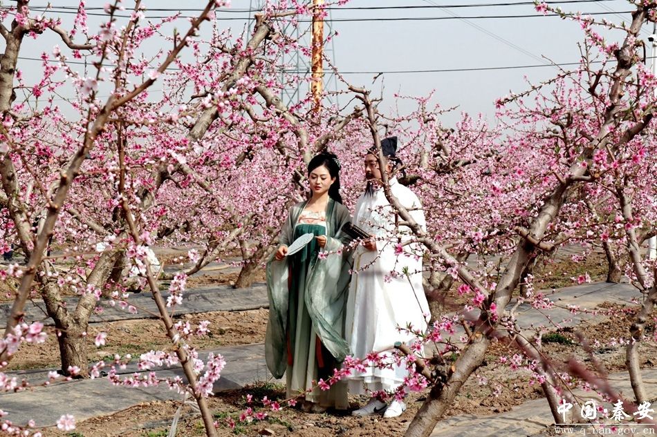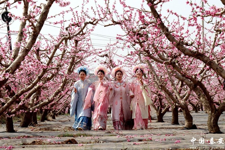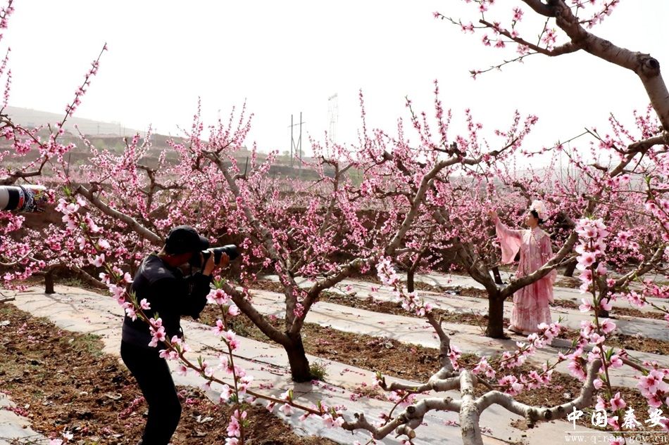 为了增加活动的趣味性和互动性,活动还特别安排了演员扮演“桃花仙子”和唐代著名诗人李白作为摄影模特。身着汉服的“桃花仙子”在花丛间翩翩起舞,而“李白”则手持折扇,携“妻子”漫步于桃花园中,仿佛穿越时空,再现了当年诗仙游历秦安的情景。摄影家们争相拍摄这些生动的画面,将传统与现代完美融合。