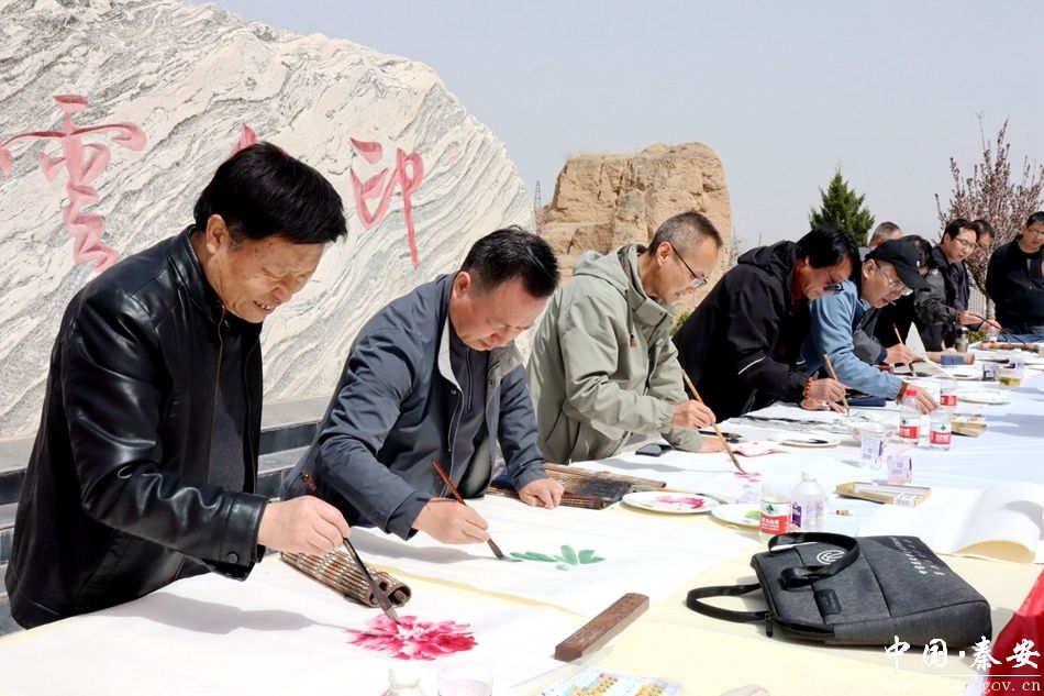 新天水讯 据秦安县融媒体中心消息 4月9日,由秦安县新时代文明实践中心和秦安县文学艺术界联合会联合主办的“相约桃乡·翰墨颂春”文艺采风活动在兴国镇高坪村生态产业园、花篅子生态产业园、刘坪镇桃花堡及周湾村游客服务中心成功举办。此次活动邀请了天水市文联及其书法家协会、作家协会、摄影家协会、美术家协会的艺术家们走进秦安桃园,以诗文、书画、摄影等形式全方位宣传推介秦安桃花美景,助力乡村振兴。秦安县文联及其相关协会的艺术家一同参加。