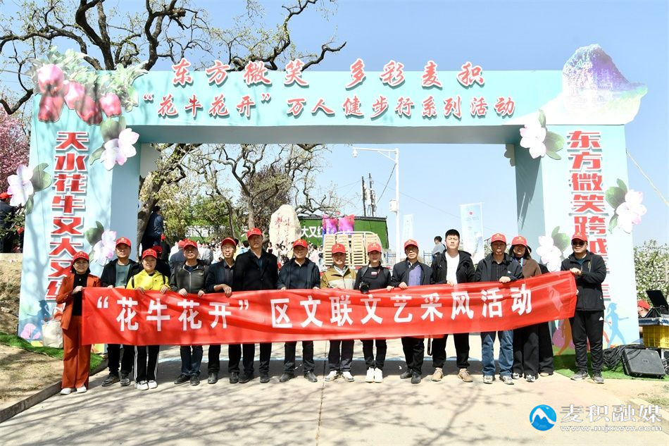 新天水讯 据麦积区融媒体中心消息 人间最美四月天,花牛花开香满园。4月13日,麦积区文联组织区摄影家协会、区书法家协会、区美术家协会、区作家协会部分会员及麦积山诗社社员等文艺志愿者20余人,走进花牛镇南山花牛苹果基地,开展“花牛花开”文艺采风活动。