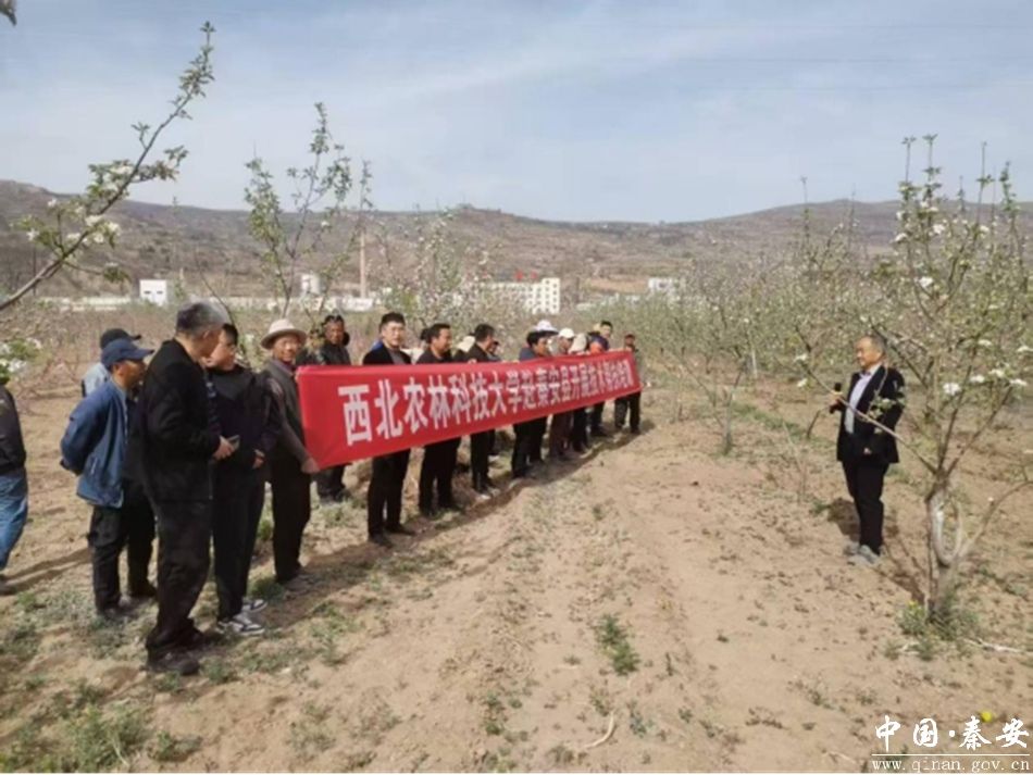 新天水讯 据秦安县融媒体中心消息 为了进一步促进全县果品产业迭代升级,4月14日至15日,北京科技大学特邀西北农林科技大学园艺学院教授王雷存、研究员王安柱来秦安县开展技术指导。