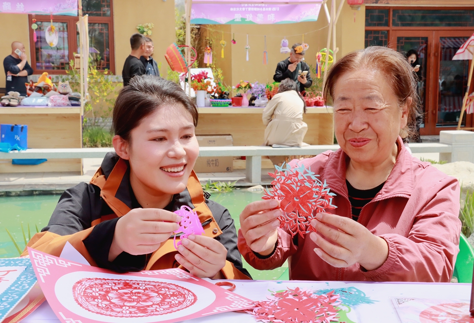 乡村市集是温泉村吸引游客的重要文旅活动之一。走进市集,游客们穿梭在摊位间,挑选心仪好物,近距离观赏非遗技艺制作过程,有些甚至亲自参与手工艺品制作,沉浸式感受乡村风情。省级非物质文化遗产代表性项目“清水剪纸”传承人王永兰的展位备受瞩目,她剪刀下的丁香、轩辕黄帝形象栩栩如生,吸引众多游客驻足欣赏。
