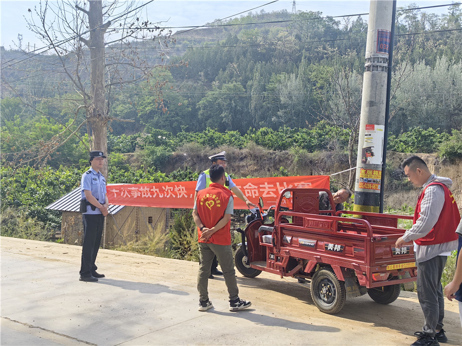 行动中,交通劝导员与交警深入大樱桃市场所在的四十铺、三合、楯子滩等村通村路口,采取张贴交通安全宣传横幅、发放宣传手册、现场劝导教育等形式,向来往车辆尤其是农用三轮车驾驶员普及道路交通安全知识,引导车辆驾驶员自觉抵制农用三轮车载人、机动车超载等违规违法行为,遵守交通规则,安全出行。对存在不系安全带、驾乘电动车不佩戴安全头盔、车辆乱停乱放等违规违法行为的,工作人员现场指出问题,开展教育劝导,纠正交通违法行为,消除道路交通安全隐患,提升群众道路交通安全意识,坚决杜绝道路交通安全事故发生。