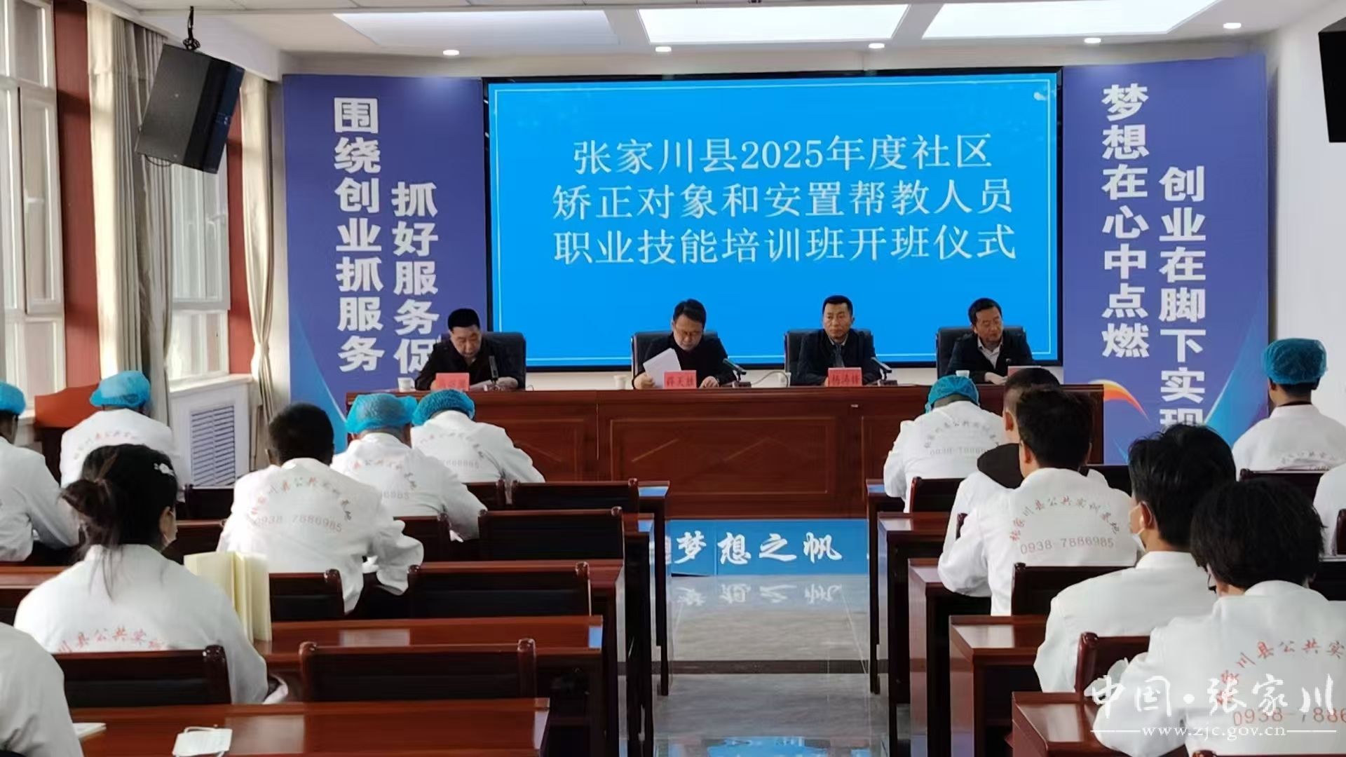 新天水讯 据张家川县融媒体中心消息 5月29日,张家川县2025年首期社区矫正对象和安置帮教人员职业技能培训开班仪式在张家川县餐饮服务业公共实训基地举办。县委常委、政法委书记薛天胜出席会议并讲话,副县长、公安局局长杨涛锋主持会议。县人社局、县司法局负责人参加开班仪式,县司法局班子成员、张川、刘堡、胡川司法所所长以及30余名社区矫正对象和安置帮教人员参加培训活动。