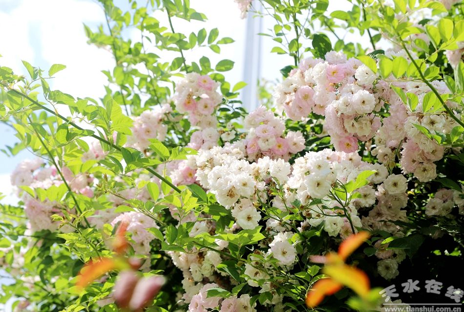 新天水讯 据清水县融媒体中心消息 初夏草木深,暗香动全城。时下,清水县城乡蔷薇全面盛开,迎来最佳赏花季。成片的蔷薇花在街头巷尾、公园绿地、庭院门前次第绽放,颜色靓丽的花簇如云似霞,为城市和乡村披上夏日“霓裳”。这场“花海浪漫”不仅扮靓了城乡风景,更成为生态清水建设的一抹亮色。