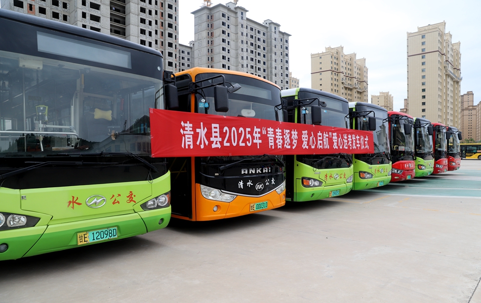 新天水讯 据清水县融媒体中心消息 青春逐梦,爱心启航。6月3日,清水县2025年爱心送考发车仪式在清水县汽车站举行。这场由共青团清水县委、清水县交通运输局、清水县公安交警大队、清水天嘉公交旅游实业有限公司携手组织的公益活动,将为今年高考考生筑起温暖畅通的赴考之路。