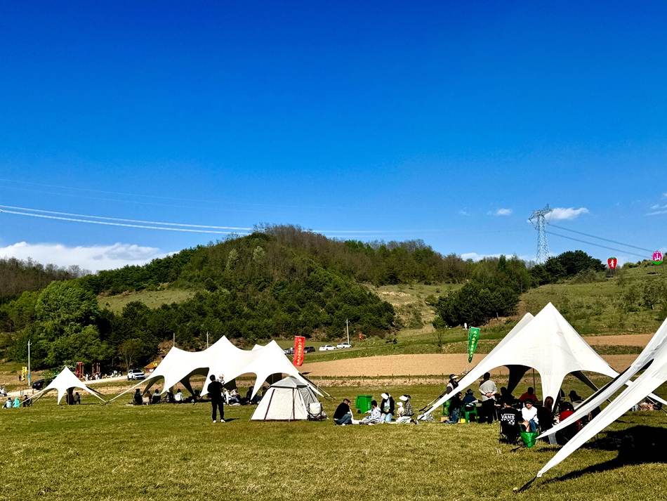 今年以来,草川铺镇立足资源优势,创新打造“体验式、沉浸式”乡村旅游新模式,在冯山村蔡山自然村利用宽阔的草滩地建成休闲露营地,将闲置农家院落改造成民宿和农家乐,在草地溪流旁打造儿童娱乐石涧戏水区。按照“3+3+3+1+10”的建设布局,全新打造了 1个游客服务中心、3个餐饮服务区、3个文化体验区、4个运动休闲区、10个网红打卡点,集自然风光、生态环境、人文景观于一体的旅游景点和丰富业态吸引众多游客前来打卡体验。