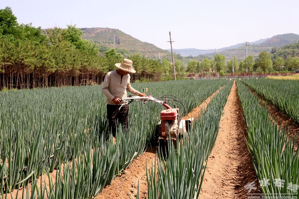 “我今年种了150亩大葱,现在是中期生长阶段,大葱长势喜人,这几天在浇水、培土等管理,预计8月1日前可以上市,产量‘大概’‘左右’二者删其一,大葱主要发往天水周边及外地。”永清镇家庭农场负责人吴亚军说。