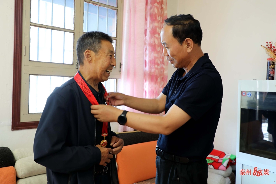 今年76岁的闫东全是有着50年党龄的老党员,他曾担任村书记18年,为全村产业发展、乡村建设等作出积极贡献。康泰来来到闫东全家中,关切地询问老人的身体状况和家庭情况,并为他佩戴上“光荣在党50年”纪念章。得知老人家离任后仍积极发挥余热,积极支持配合村内工作,在党员和群众中发挥着先锋模范作用时,康泰来给予肯定,希望他在保重身体、安享晚年的同时,继续发挥党员模范带头作用,在力所能及的情况下发挥余热,为全区各项事业发展作出积极贡献。