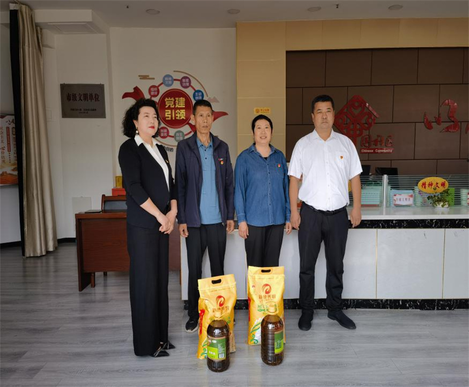 新天水讯 据秦州区融媒体中心消息 6月30日,秦州区招商局党支部“七一”慰问中城街道绿色市场社区困难党员。为2户困难党员送去大米和油等慰问品,并向他们致以节日的祝福与问候。