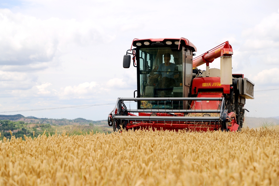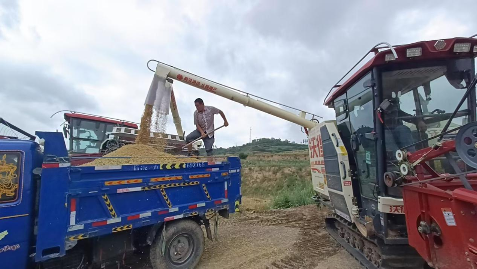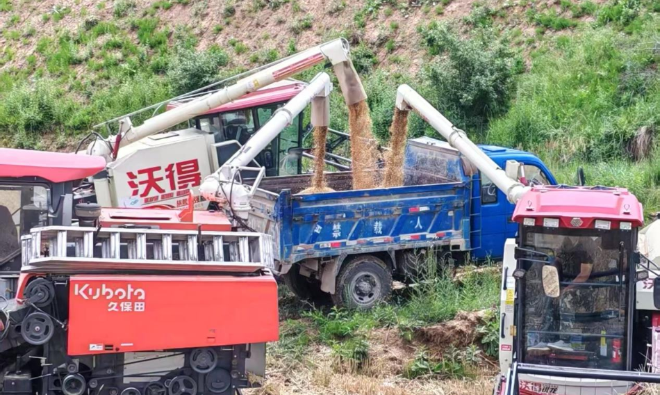 在全县范围内,各乡镇也积极行动起来,纷纷投入夏粮收割工作。进入六月,在郭川镇川儿村高标准农田示范点,抬眼望去,一台台收割机正开足马力驰骋田间,伴随机械的轰鸣,金黄的麦子如瀑布般倾泻在运输车中,收割、脱粒、碎秆一气呵成。