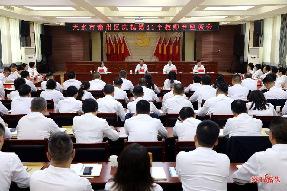 新天水讯 据秦州区融媒体中心消息 9月9日,秦州区举行庆祝第41个教师节座谈会,传达学习了习近平总书记关于教育强国重要论述和中共中央 、国务院印发《教育强国建设规划纲要(2024-2035年)》文件精神。市委常委、区委书记康泰来出席会议并讲话。