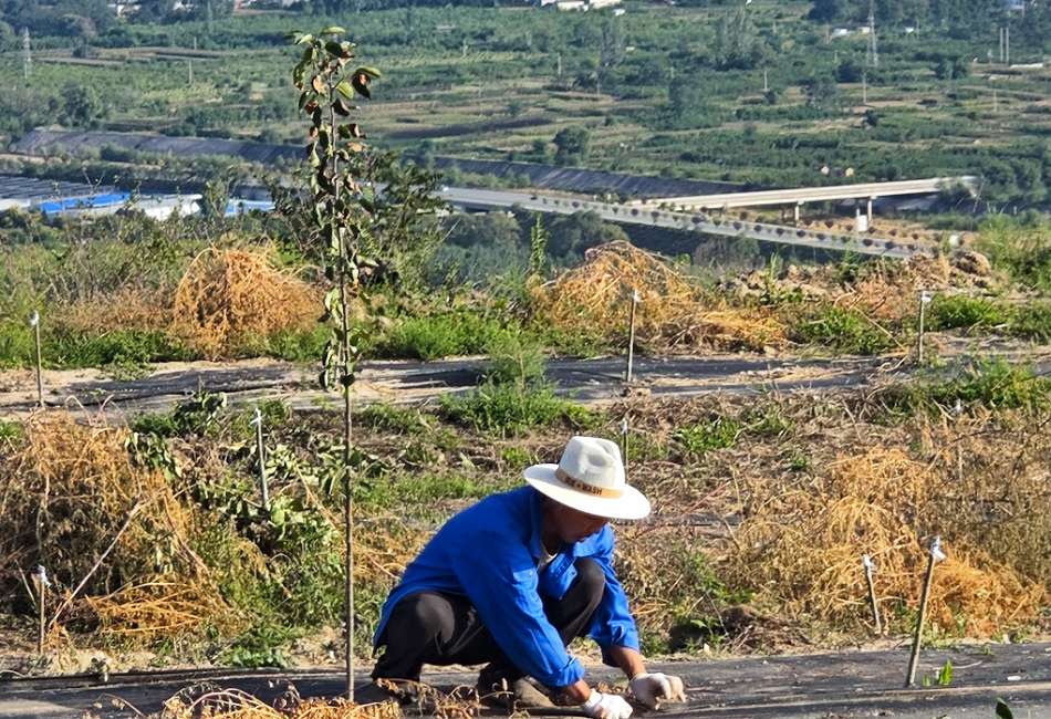 在种田村股份经济合作社的170亩新建果园里,合作社负责人余三强正带领社员进行玛斯特红蛇苹果的嫁接收尾工作。“今年春季共建园170亩,其中维纳斯黄金5亩、瑞雪5亩、瑞香红5亩、马斯特红蛇155亩。我们主要采用的是矮砧密植宽行种植技术,这样种植提高了效益,降低了成本。”余三强告诉记者,“预计2028年将首次挂果!”