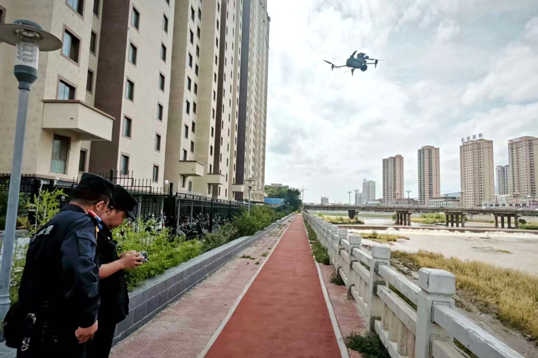 甘谷警用无人机巡航河道 科技赋能筑牢防溺水安全网