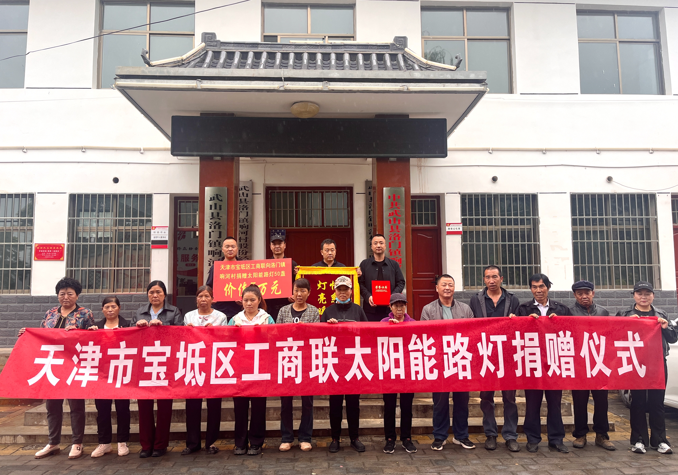 天津市宝坻区工商联向武山县洛门镇响河村捐赠太阳能路灯