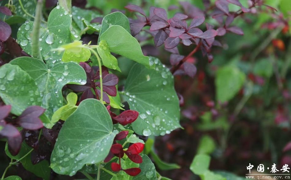 秦安:一场秋雨催凉来 叶挂水珠秋意浓