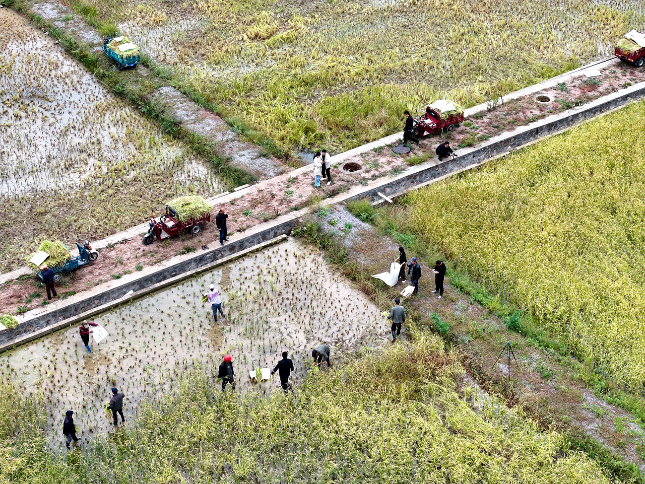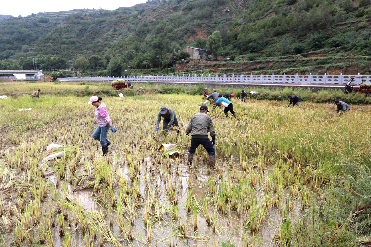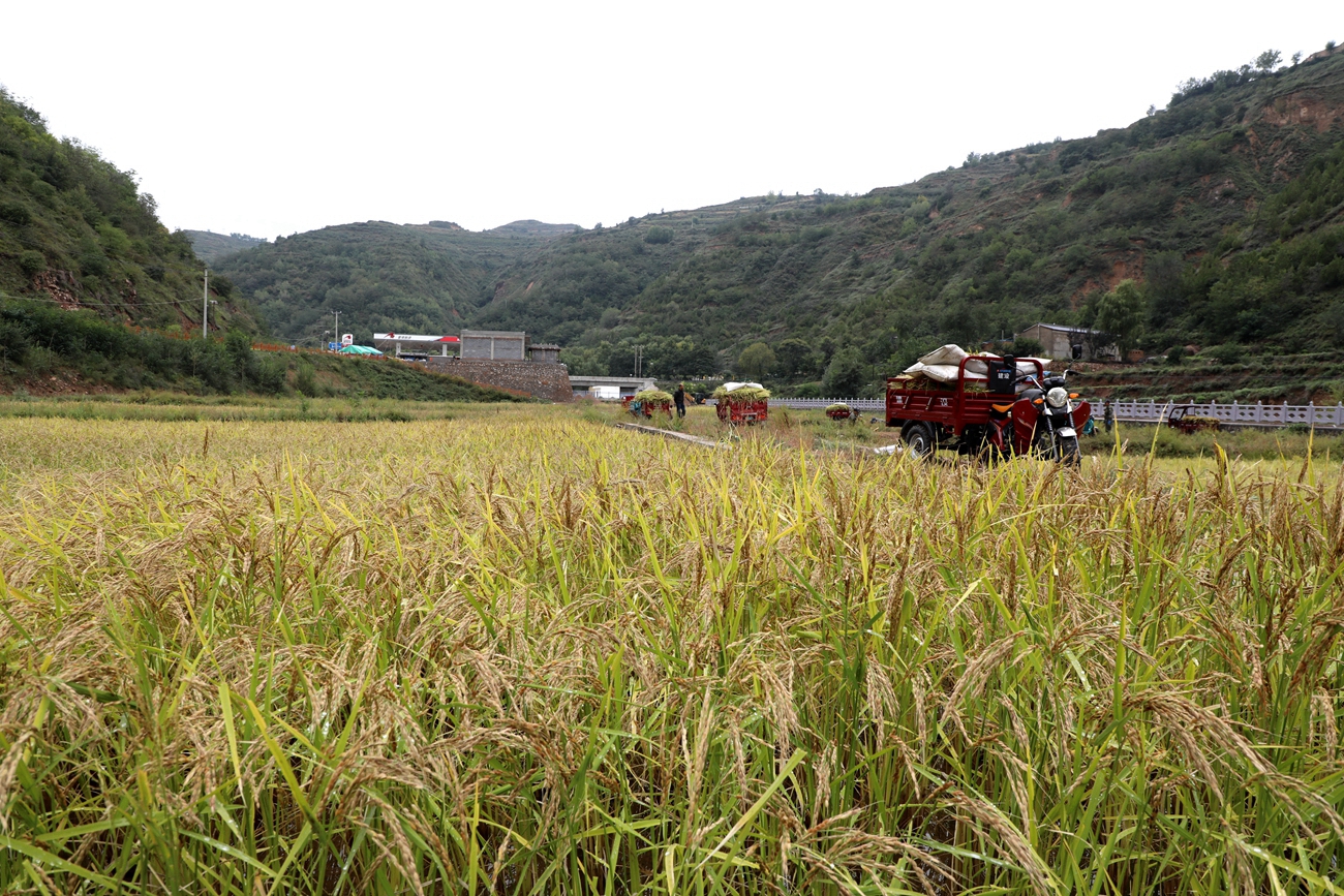 新天水讯 据武山县融媒体中心消息 时值金秋,武山县温泉镇温泉村的百亩稻田一片金黄。微风拂过,稻浪翻滚,清香袭人。村民们正忙着收割、捆扎、搬运,脸上洋溢着丰收的喜悦。“温泉贡米”迎来了又一个丰收年。