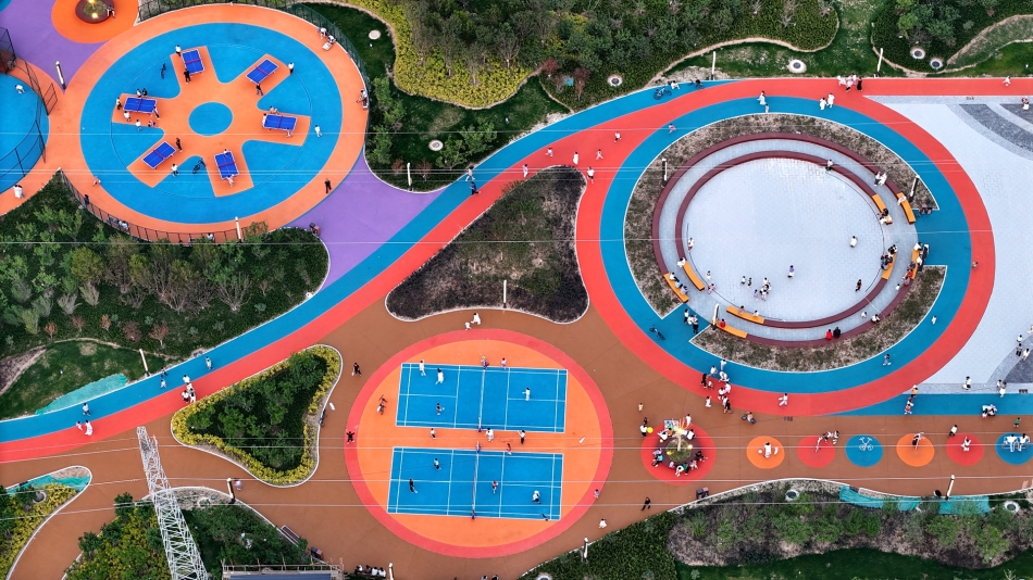 走进体育公园,映入眼帘的是3万平方米的绿化区域,各类花草树木错落有致,四季更迭,景色各异。早起的市民纷纷来到这里,打太极的老人动作行云流水,年轻的跑步爱好者步伐矫健,沿着新修的步道尽情奔跑,挥洒汗水;孩子们则在儿童活动场地玩沙、骑车,满是欢快的身影。