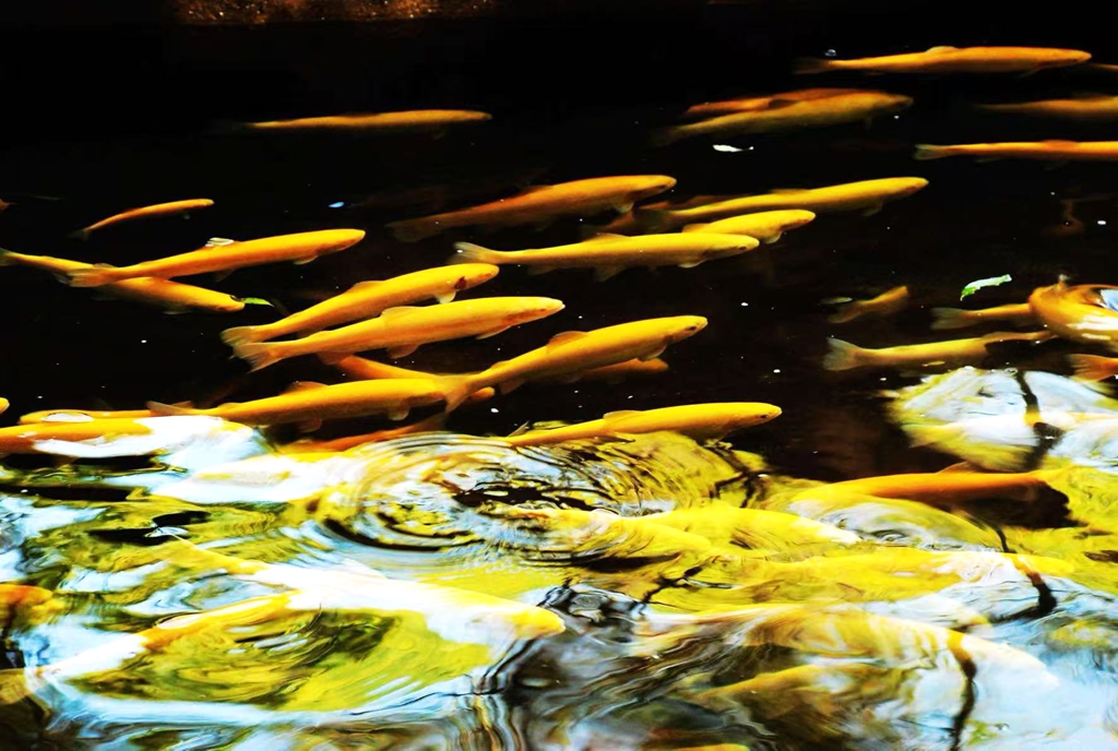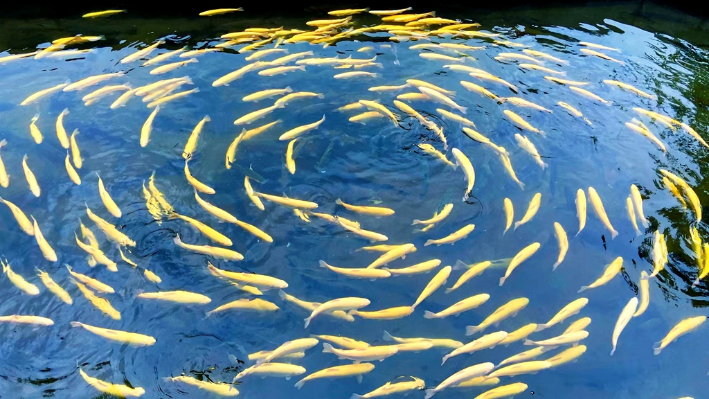 冷水鱼养殖基地,同样充满生机。董庄村、青山村的流水鱼池里,清澈的泉水潺潺流动,金鳟、虹鳟鱼在水中灵活穿梭,偶尔跃出水面,溅起阵阵水花。养殖户捞起一网鲜鱼,鳞光闪闪的鱼儿鲜活肥嫩。“这个夏天,我们的生意非常火爆,不光是当地游客,还有全国各地的游客都慕名而来了,尤其是周末客人坐满院子,都是冲着这里的新鲜空气和农家味来的,一天忙下来,感觉特别充实。”