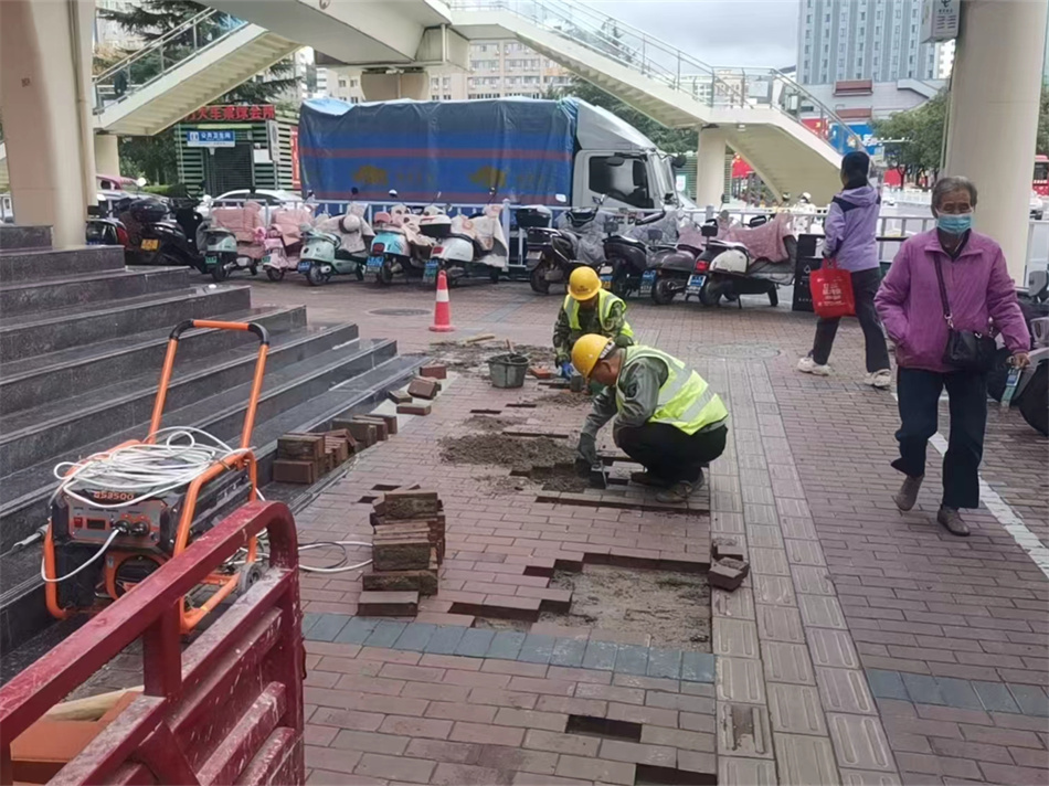 为最大限度降低施工对市民日常出行的影响,中心优化施工时序,采用“上午铣刨、下午油补”的错峰作业模式,缩短单路段施工周期。施工过程中,中心严格规范施工单位作业流程,全程遵循铣刨、清理、铺设沥青、压实等标准化工序,确保修补质量达标;同时,同步做好现场安全围挡设置、交通指引标识摆放,并安排专人在施工路段周边疏导交通、引导行人和车辆绕行,全力将施工对市民出行的干扰降到最低。截至目前,完成修补羲皇大道、成纪大道、大众中路、岷山路等重点路段破损路面750余平方米,修复双桥路、合作中路、澄源巷、忠义巷、自治巷等路段人行道破损地砖81处110余平方米,更换及加固松动井盖45处,有效解决了“井盖异响”“井盖沉降”“地砖松动”等市民反映强烈的问题。