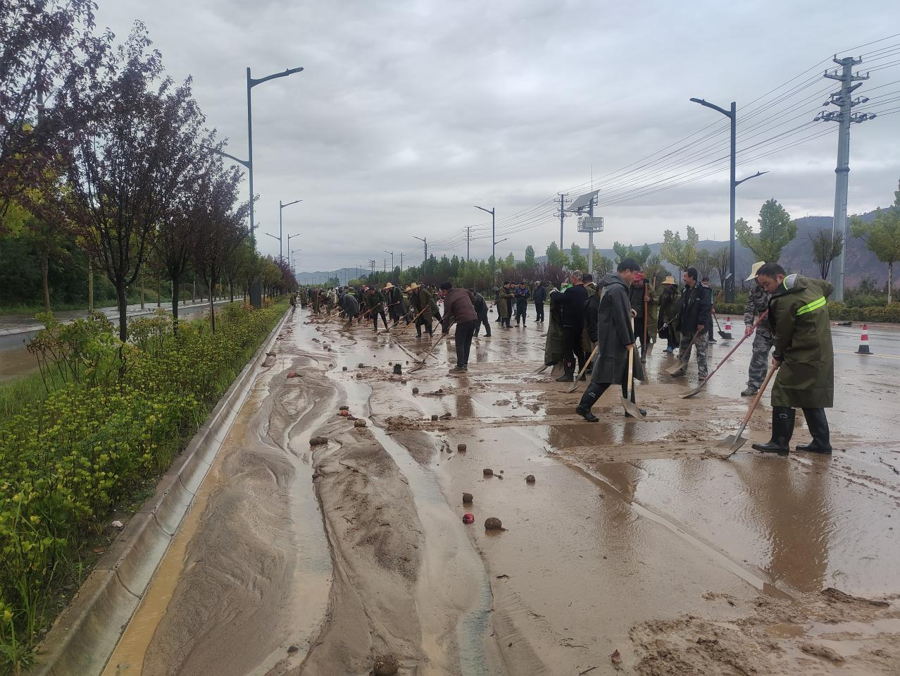 太京镇:强降雨致道路受阻 镇村干部齐上阵清淤保畅通