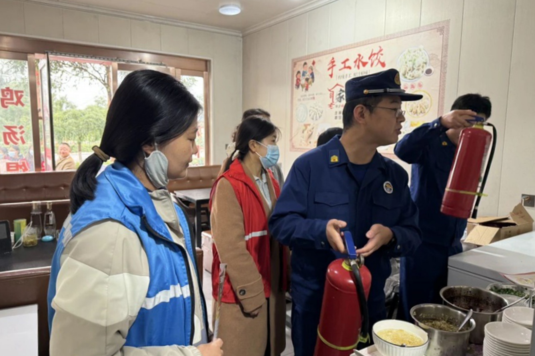 为将"韧性建设"延伸至社区每一个角落,社区工作人员与消防人员组成联合宣传队,深入辖区商铺开展入户宣传。他们为商户发放《消防安全知识手册》,结合商铺经营特点,重点强调规范存放易燃物品、定期检查消防设施、保持疏散通道畅通等要求,督促商户落实主体责任,将安全韧性融入日常经营管理。