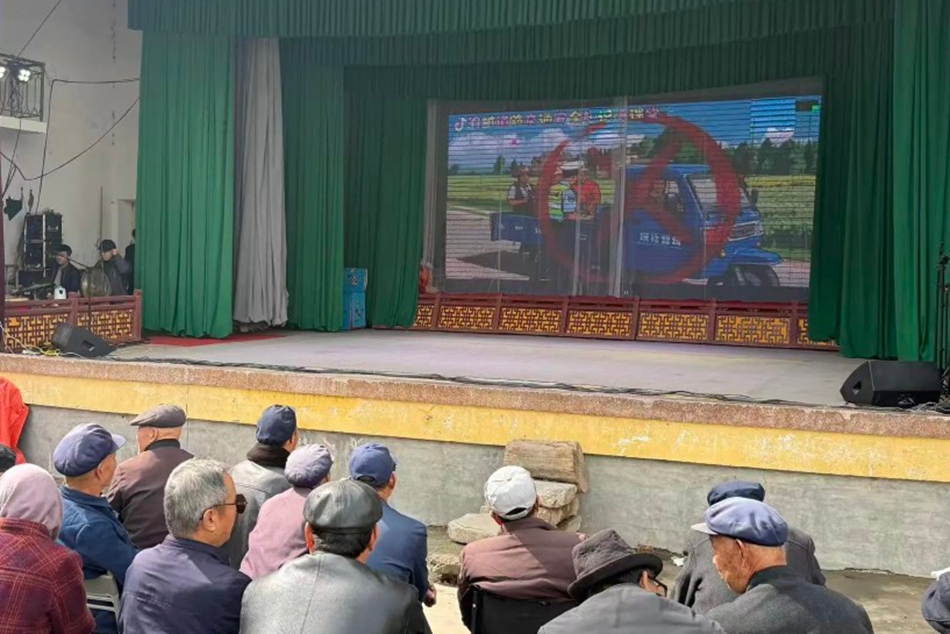 “大屏+小屏”联动,安全知识“声”入人心。针对庙会老年群体多、集中观看需求强的实际,派出所提前与主办方沟通,将戏台主区域电子大屏作为宣传主阵地,精选反诈警示短片、农村道路交通安全动画、禁燃政策解读、“四烧”整治及秋冬季防火安全等5类群众关切的宣传视频,通过“循环播放+字幕提示”形式,让群众在看戏、赶集间隙“抬头受教育”。现场不少群众驻足观看,直言“视频里的案例就发生在身边,比发传单更直观!”