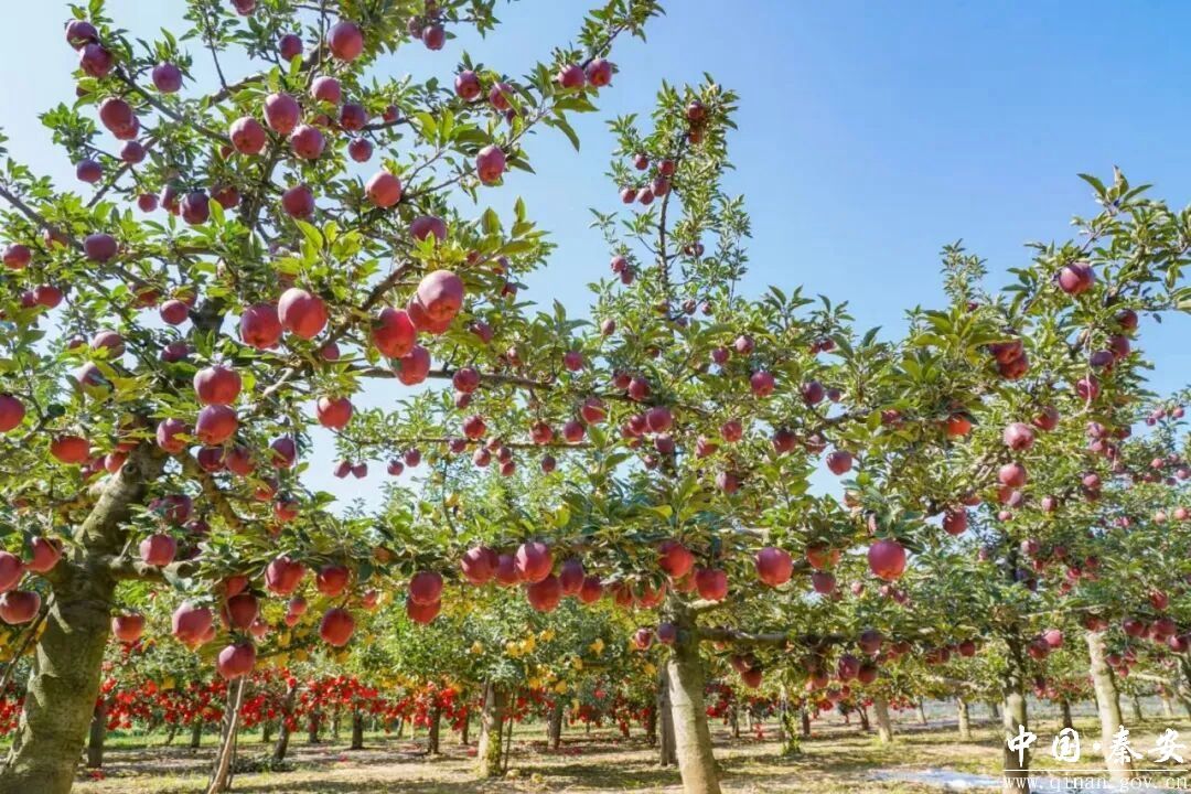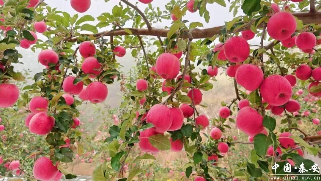 新天水讯 据秦安县融媒体中心消息 金秋十月,西北大地经过一场连绵秋雨的洗礼,天气逐渐转凉,太阳已不似先前夏天那般炙热。走进秦安县莲花镇,阳光洒在一片连着一片的苹果园里,温暖而和煦,红彤彤的苹果挂满枝头,果香四溢,勾勒出一幅绚丽的秋日“丰景图”。这座坐落于清水河畔的小镇,正沉浸在苹果丰收的喜悦之中,而这沉甸甸的果实,也成为了农民增收致富的 “金果子”。