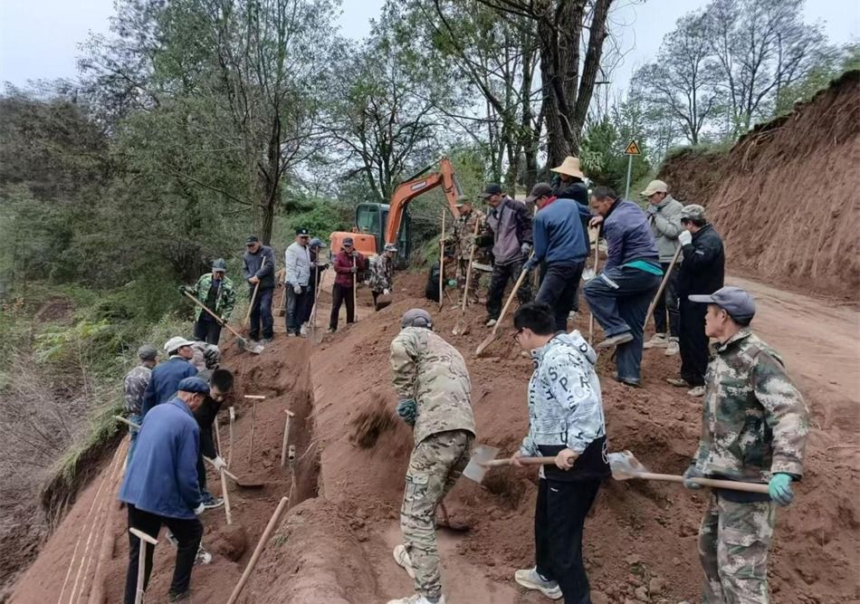 在抢险现场,村“两委”科学分工、高效统筹:一方面安排专人在滑坡路段两端设置醒目的警示标识,耐心引导过往群众绕行安全路线,避免二次风险。另一方面通过村广播循环播报、微信群紧急通知等方式,向全村发出抢险号召,党员、村民代表及青壮年村民闻讯后迅速响应,主动投身抢通工作。