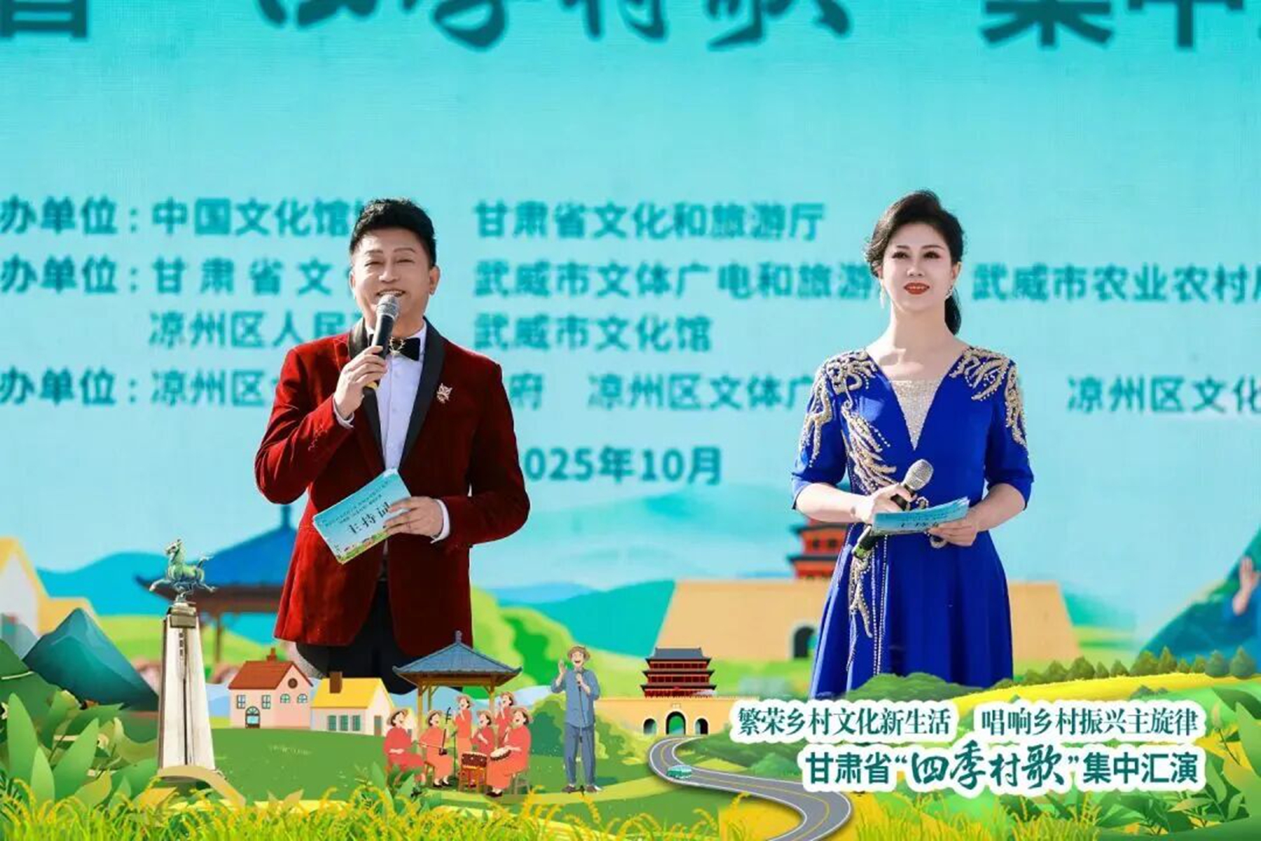 新天水讯 据甘谷县融媒体中心消息 10月28日,由中国文化馆协会与甘肃省文化和旅游厅共同主办,甘肃省文化馆、武威市文体广电和旅游局等单位联合承办的全省“四季村歌”集中汇演系列活动,在武威市凉州区金沙镇成功举办。