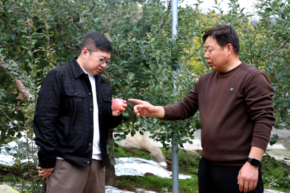 果园里采摘正忙,果园外客商已闻香而至。甘肃省坤牛电子商务有限公司、塞北泰陇农产品有限公司的张亮,正在果园地头,拿起一颗苹果建议将“仔细端详”修改为“端详”,查看果皮着色与果面光滑度,用手轻捏果实感受硬度,随后切开一小块品尝果肉,脸上露出满意的笑容。“清水县远门镇的苹果特别不错,我们目前有一批外贸的订单,大概是5吨,现在和远门镇已经达成了初步的合作意向。下一步对接细节,预计下周进行发货。”张亮满意地说着。远门的苹果也即将走出国门。