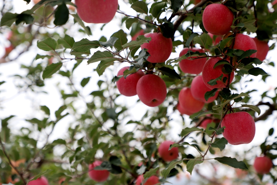 夜明村村民李元科一边说着,一边踮起脚尖,小心翼翼地捏住一颗苹果,手腕轻轻一转,果实便稳稳落入筐中。他的动作娴熟利落,竹筐里的苹果很快堆起小堆。“远门镇昼夜温差大,种出来的苹果口感好、香甜,现在正是特别好吃的时候。”李元科拿起一颗刚摘下的苹果高兴地说,脸上满是丰收的喜悦。