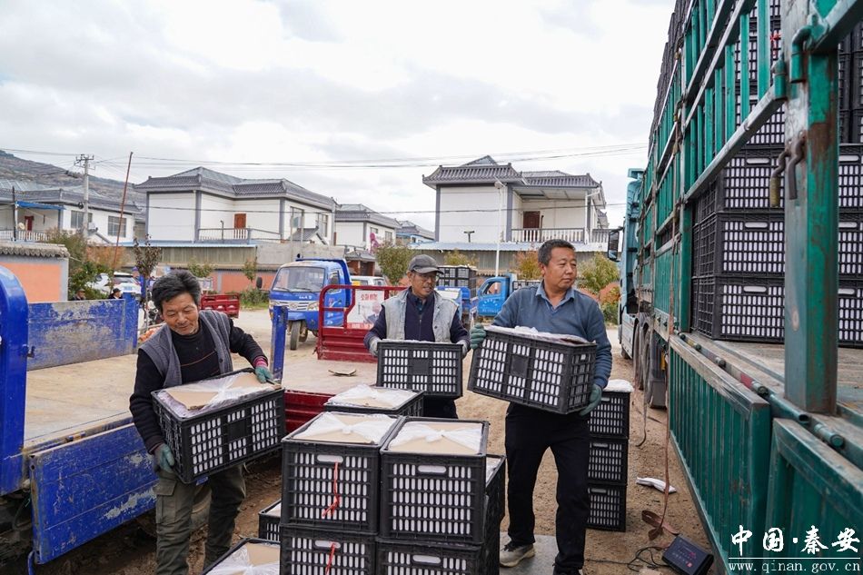 新天水讯 据秦安县融媒体中心消息 时下,秦安县莲花镇的苹果采摘已进入收尾阶段,全镇1.5万余亩果园基本完成采收。与此同时,各村临时果品交易市场交易氛围浓厚,省内外客商正有序进行苹果收购工作。