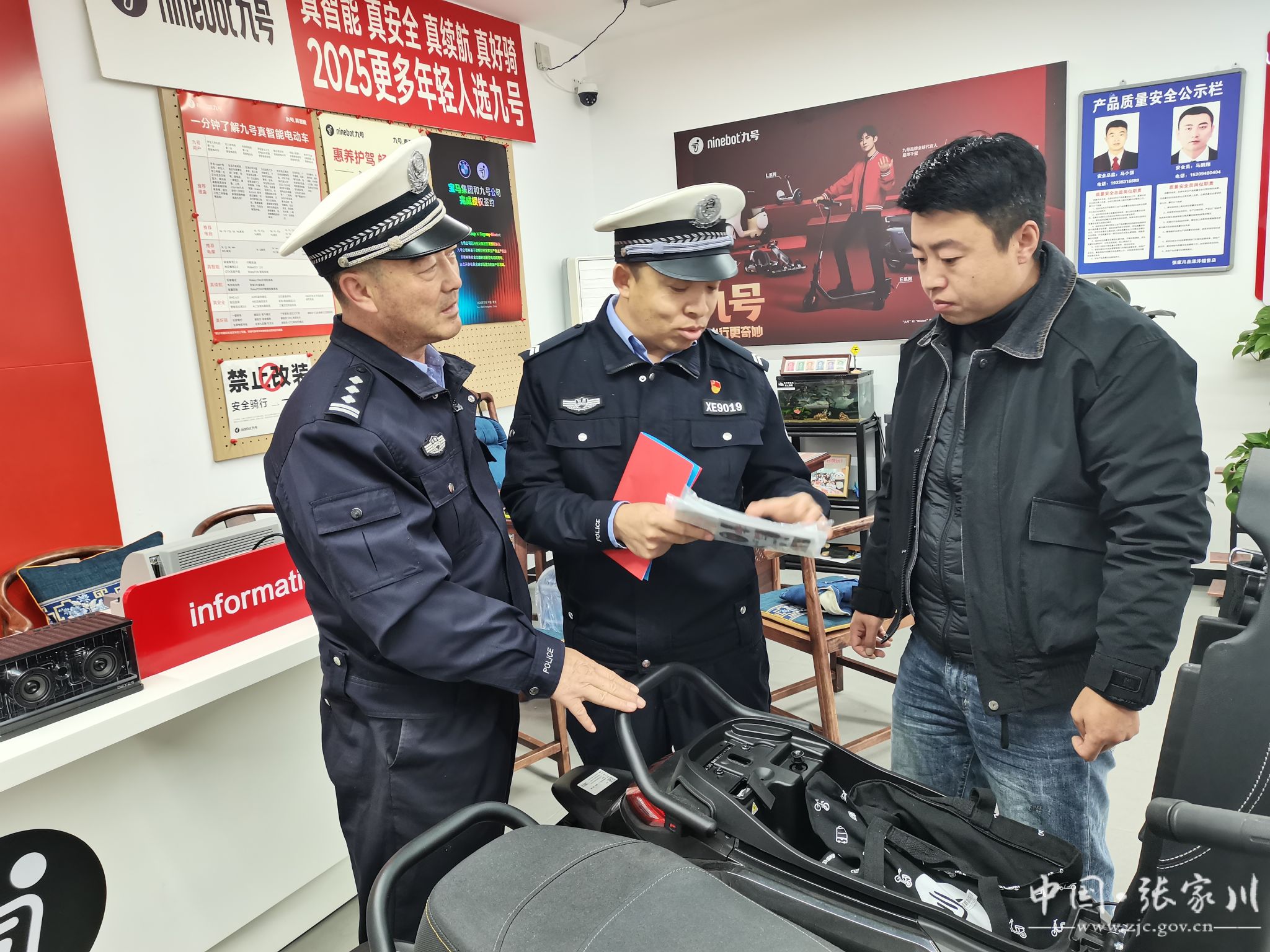 新天水讯 据张家川县融媒体中心消息 为预防和减少辖区涉电动车道路交通事故,规范其销售市场秩序,从源头上强化交通安全管理,11月5日,张家川县公安局交通管理大队民警深入辖区电动车销售网点,开展电动车上牌宣传活动。