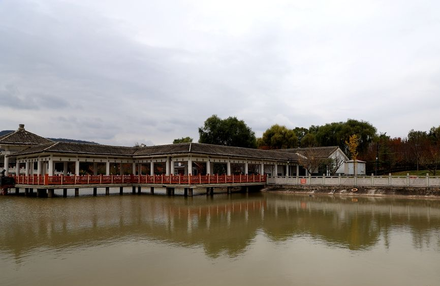 沿着轩辕大道前行,行至轩辕湖畔,又是另一番醉人景象。湖面波光粼粼,澄澈的湖水如一块碧绿的翡翠,微风拂过,湖面泛起层层涟漪,倒影随波荡漾,虚实交织,美不胜收。极目远眺,远处的群山层林尽染,深浅不一的红、黄、绿漫山遍野,与近处的湖光、大道相映成趣,构成一幅立体的秋日山水图。