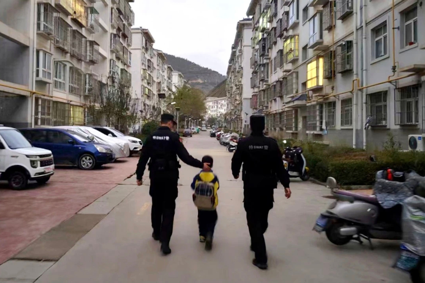 11月7日傍晚时分,夕阳渐沉,西关小学“护学岗”的特警队员像往常一样目送最后一批学生平安离校后准备撤离,就在此时,一个小小的身影引起了队员们的注意,一名低年级男生独自站在路边,不时左顾右盼,眼神中满是焦急与不安。